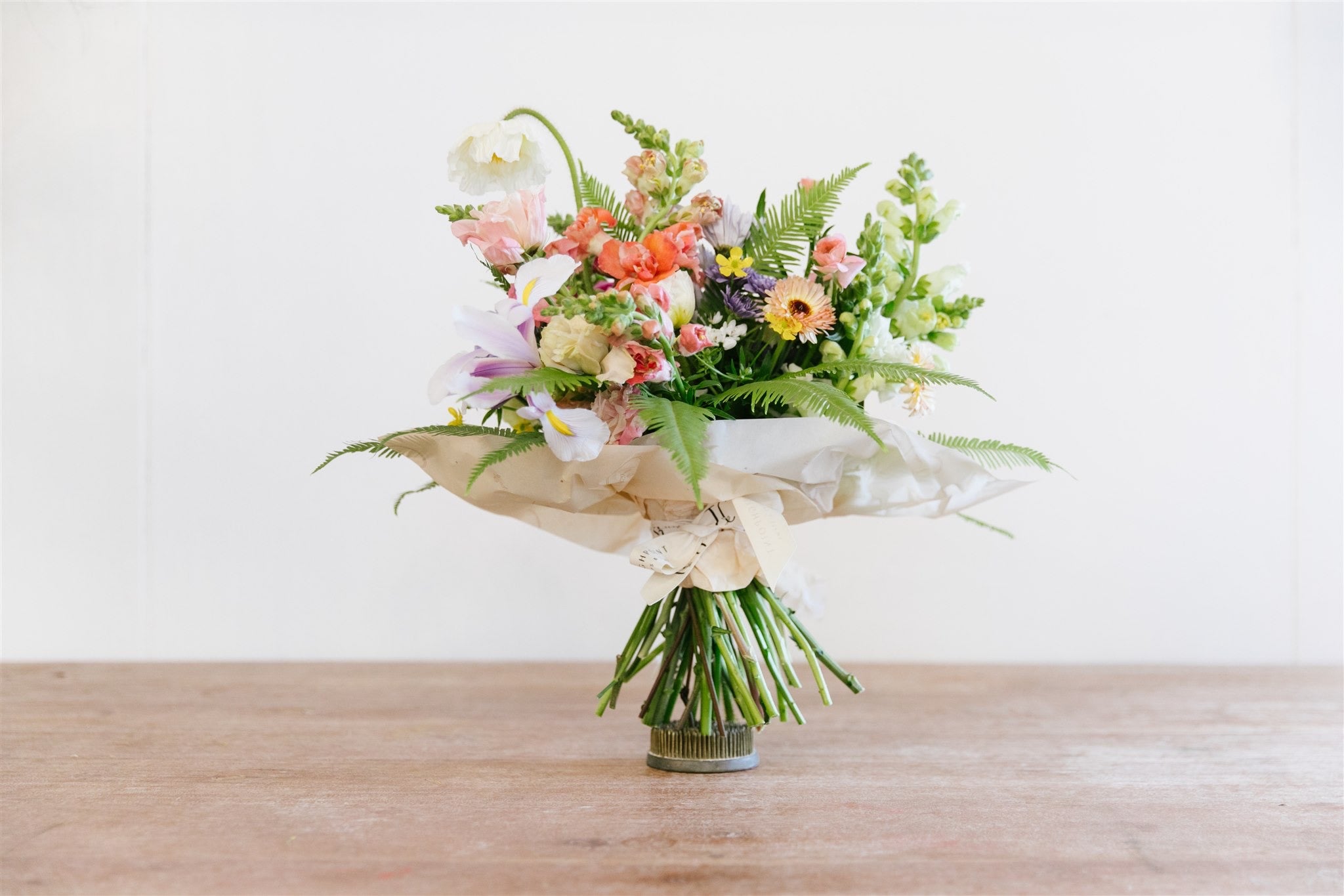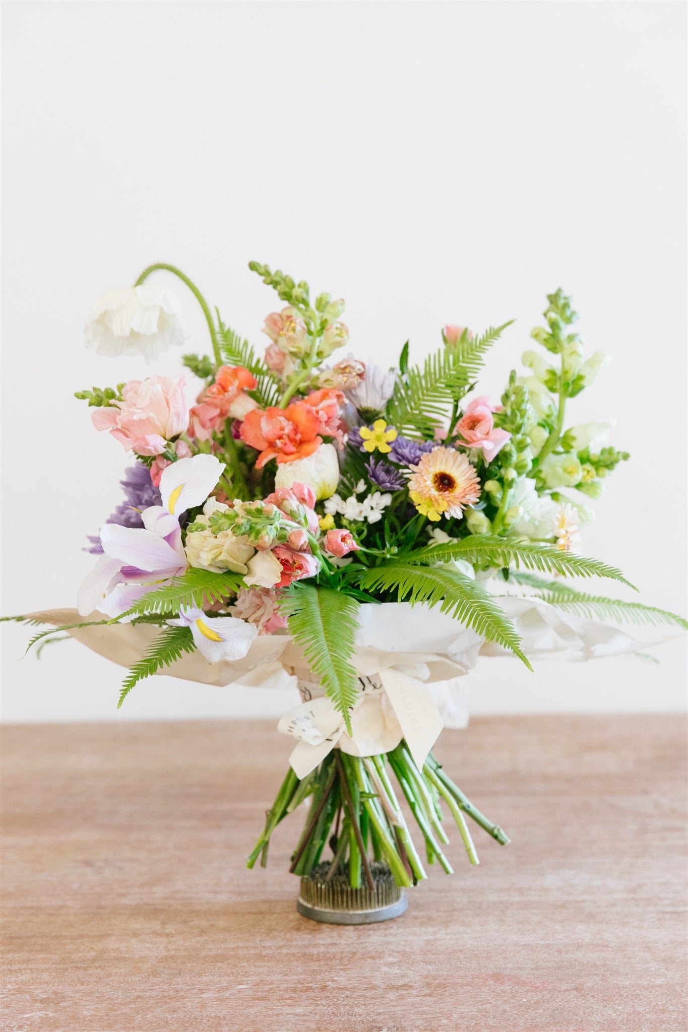 If you’ve got that Martha Stuart typa mom, with vases on deck, who would love nothing more than to play with these organically grown, perfectly safe to handle + style her cheese board /cocktail hour with, then our Grande Paper Wraped Bouquet is the route for you!!!
